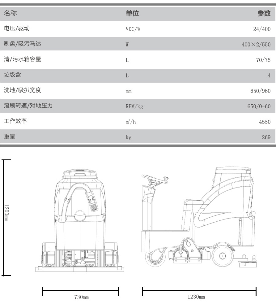 用途:洗掃一體機是集洗地掃地功能于一體的二合一機型,洗地效率高達4550平米每小時